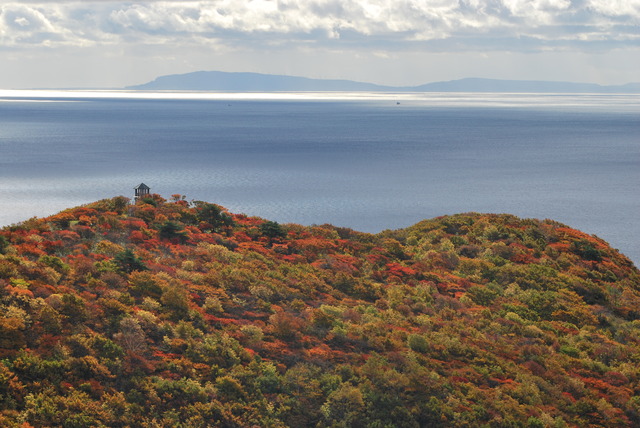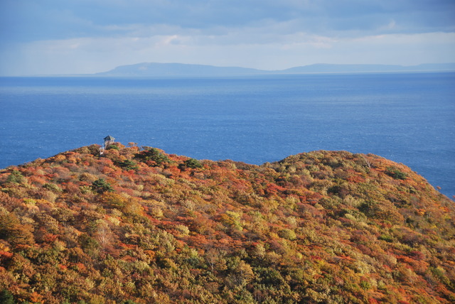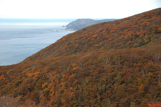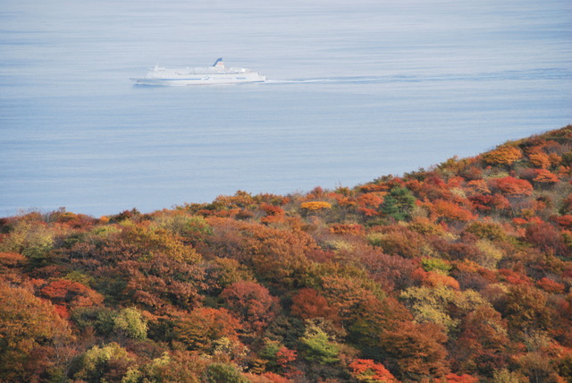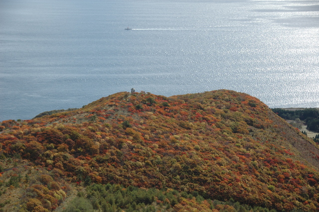 10月、函館市恵山(えさん)の紅葉は、海向山(かいこうざん)(標高570m)の山頂から始まります。