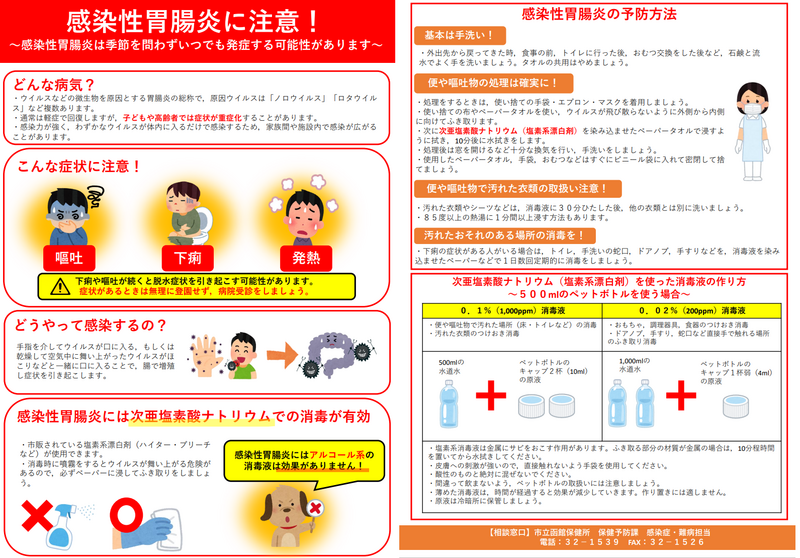 ・下痢等の症状がなくなっても,長いときには1か月程度ウイルスの排泄が続くことがあるので,症状が改善した後も二次感染予防の注意が必要です。