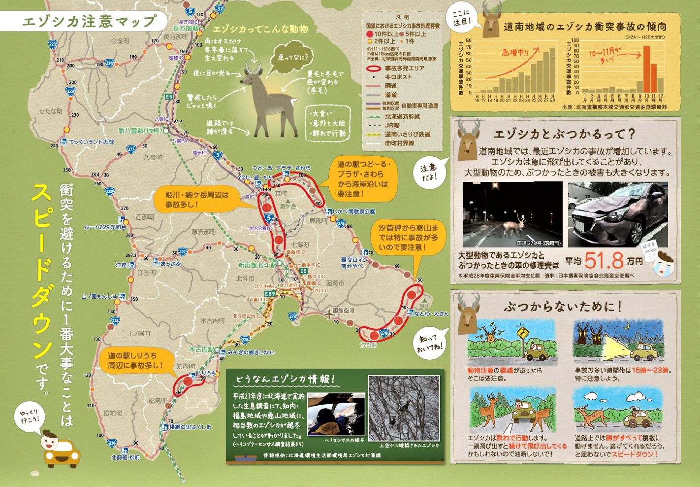 「エゾシカ注意マップ」を活用して,少しでも事故のリスクを減らしましょう。