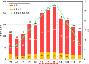 2020年から2024年までの5年間にNITE(ナイト)に通知された製品事故情報※1では、「リチウムイオン電池搭載製品」の事故※2は1860件ありました。事故の約85%(1860件中1587件)が火災事故に発展し、事故発生件数は春から夏にかけて気温の上昇とともに増加する傾向にあり、6月~8月にかけてピークを迎えます。