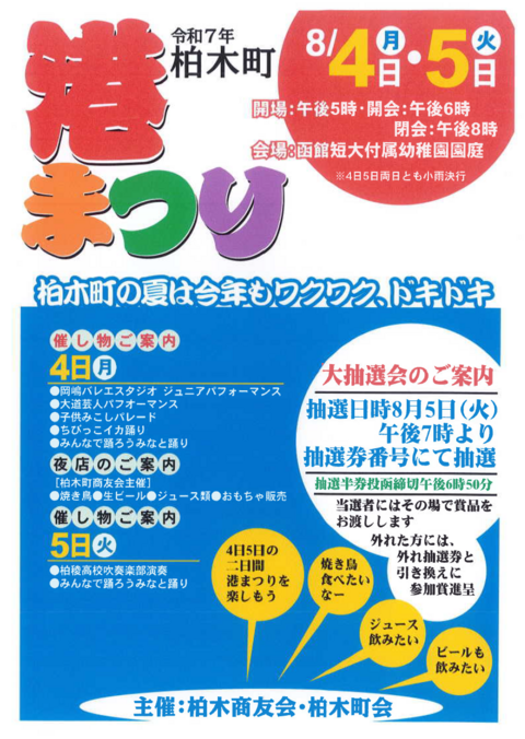 柏木商友会では,「柏木町夏まつり」を開催します。