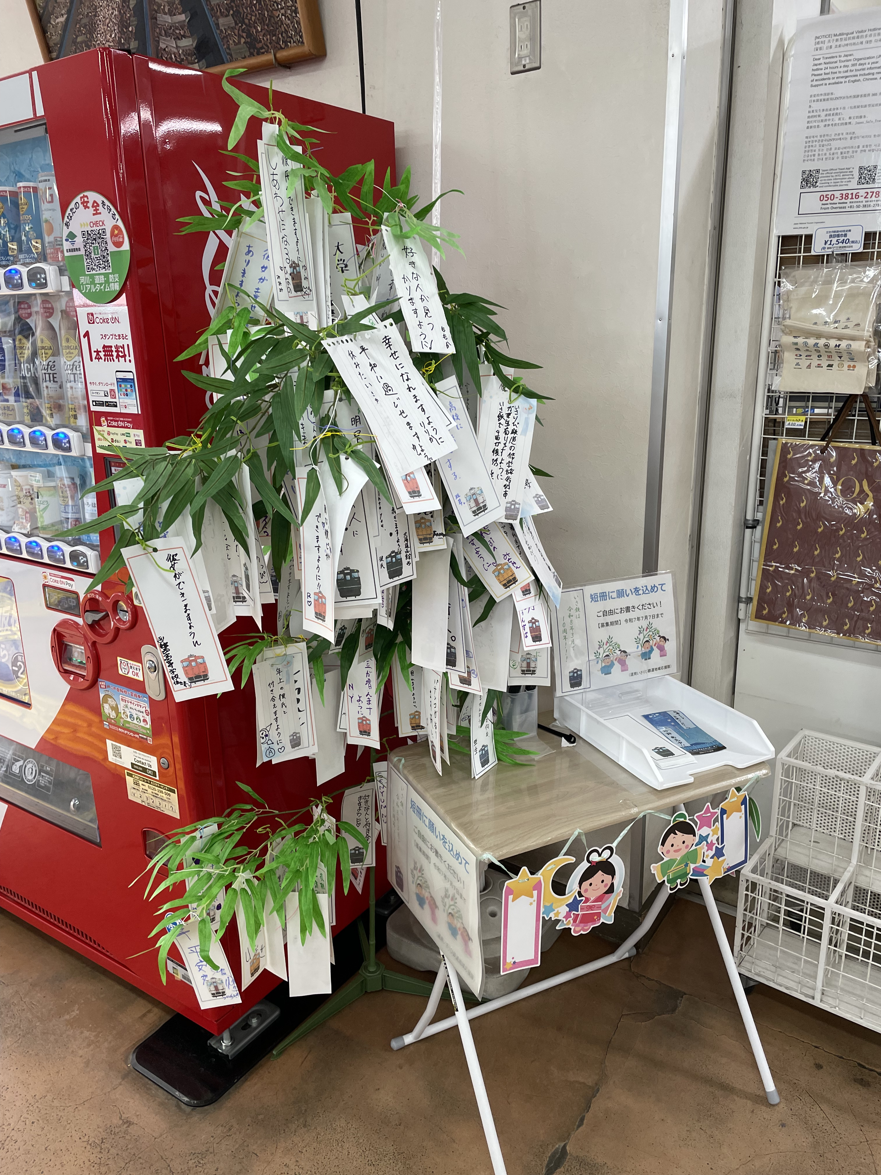 • 木古内駅、上磯駅、五稜郭駅売店にて笹と短冊を設置し、駅を御利用されるお客様に願い事を書いて、吊るしていただきました。