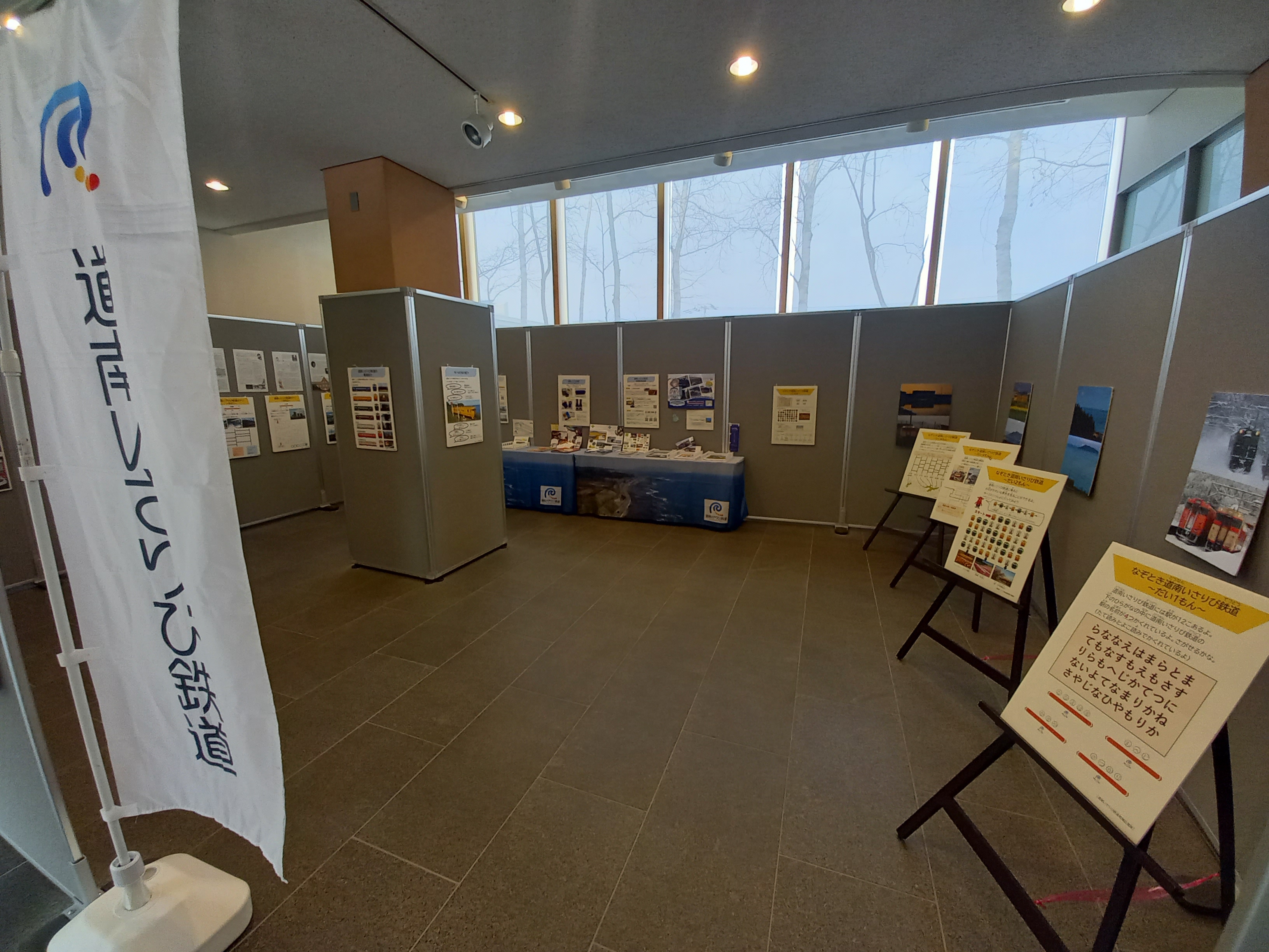 道南いさりび鉄道の沿線、車両や車窓の紹介のほか、風景写真などを展示します。お子さま向けのやさしい解説や、なぞときもあります。