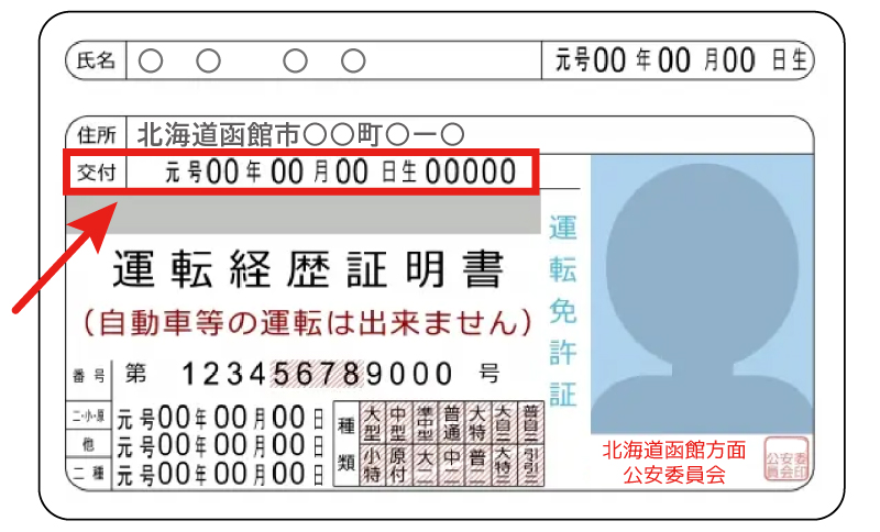 運転経歴証明書の提示が必要ですが、交付年月日の確認が必須となりますので、紙製の運転経歴証明書をお持ちください。