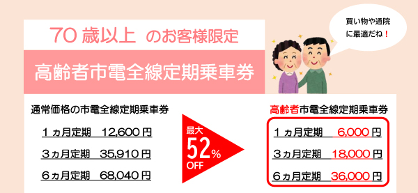 令和7年12月1日より、学生・70歳以上の高齢者、自動車運転免許を自主的に返納された方を限定とした割引率が非常に高い3つの市電全線定期券が登場します。
