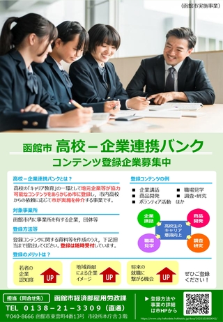 事業の詳細は,「函館市 高校-企業連携バンク事業実施要領」をご確認ください。