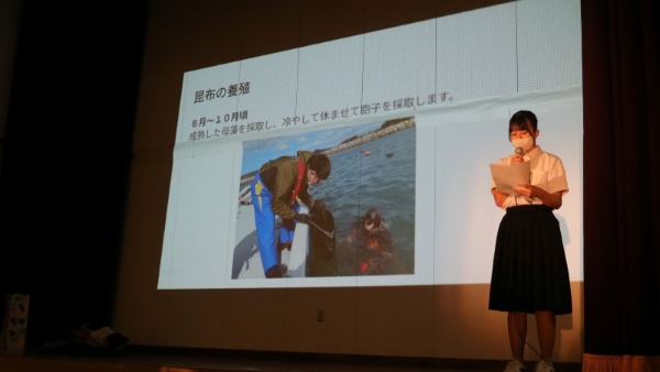 そして漁業が南茅部の主要産業であり,大謀網漁業発祥の地であるほか,我が国初の昆布養殖事業に成功するなど,常に限りない海の恵みとともに発展を続け,「白口浜真昆布」として知られる昆布を生産する道内屈指の地域です。地域のみなさんが海に支えられ,多くの中学生も家業である昆布の収穫,出荷作業を手伝いながら,学校での学習,生活に励んでいます。