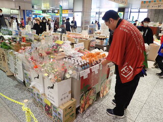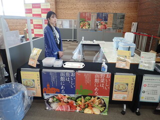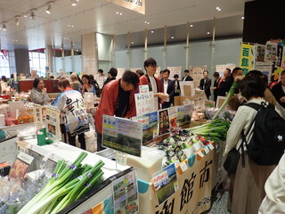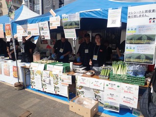 このイベントには,新函館農業協同組合,函館市亀田農業協同組合,南かやべ漁業協同組合とともに出展し,地場産農産物および加工品の販売(軟白ねぎ,白かぶ,大根,赤かぶ漬け,干しいもなど)や飲食,試食(新鮮茹でアスパラ,白カブのピクルスなど),昆布加工品の販売や試食(だし昆布,とろろ昆布,早煮昆布,濃縮だしなど)を行い,地場産農水産物をPRしました。
