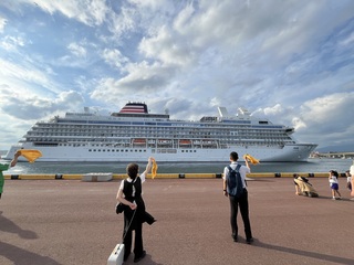 令和7年7月22日(火)に函館クルーズターミナルにて,クルーズ船「飛鳥Ⅲ」の新造船・初航海クルーズでの最初の寄港地に函館市が選ばれたことを記念し,花束や地場産品の贈呈,地元高校生のマーチングバンドによる演奏,地元特産品を振舞う「HAKODATE ひとくちマルシェ」,見送りイベントなどが実施されました。