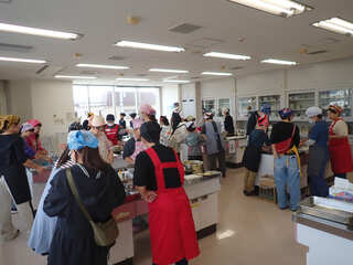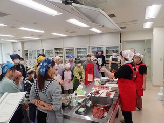 10組(23名)の皆様が,講師の指導のもと,イカ刺し,イカめし,イカのゴロ煮にチャレンジし,おいしく調理法を学びました。