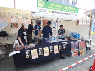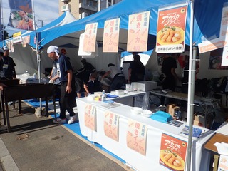 2日間で145,000人が来場したこのイベントでは,新函館農業協同組合,函館市亀田農業協同組合,南かやべ漁業協同組合とともに出展し,函館産スルメイカ炭火焼きの提供,にんじん・ジャガイモ詰め放題企画の実施,地場産農産物および加工品の販売,長ねぎを使った特別メニューの販売や試食(長ねぎのピクルスなど),昆布加工品の販売や試食(だし昆布,とろろ昆布,早煮昆布など)を行い,地場産農水産物をPRしました。