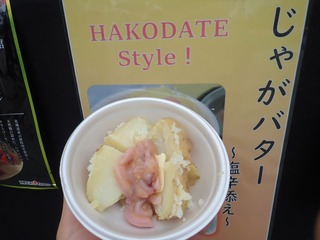 ランナー限定の「ふるまいブース」にて,ゴールされた約800人の方々に,「函館育ちメークイン」と「函館産イカの塩辛」を使用した「じゃがバター塩辛添え」をふるまい,函館の魅力的な食材をPRしました。