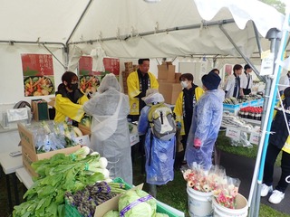 多くのお客様で賑わったこのイベントには,新函館農業協同組合とともに出展し,地場産農産物および加工品の販売(長ネギ,ふっくりんこ,トマト,リンゴ,カーネーションなど)や試食(長ネギのピクルスなど)とともに,各種掲示物・配布物の活用と商品説明によるPRや販売を実施し,「函館育ち」ブランドをはじめとした新鮮で質の高い農産物について,認知度向上と消費拡大促進を図りました。