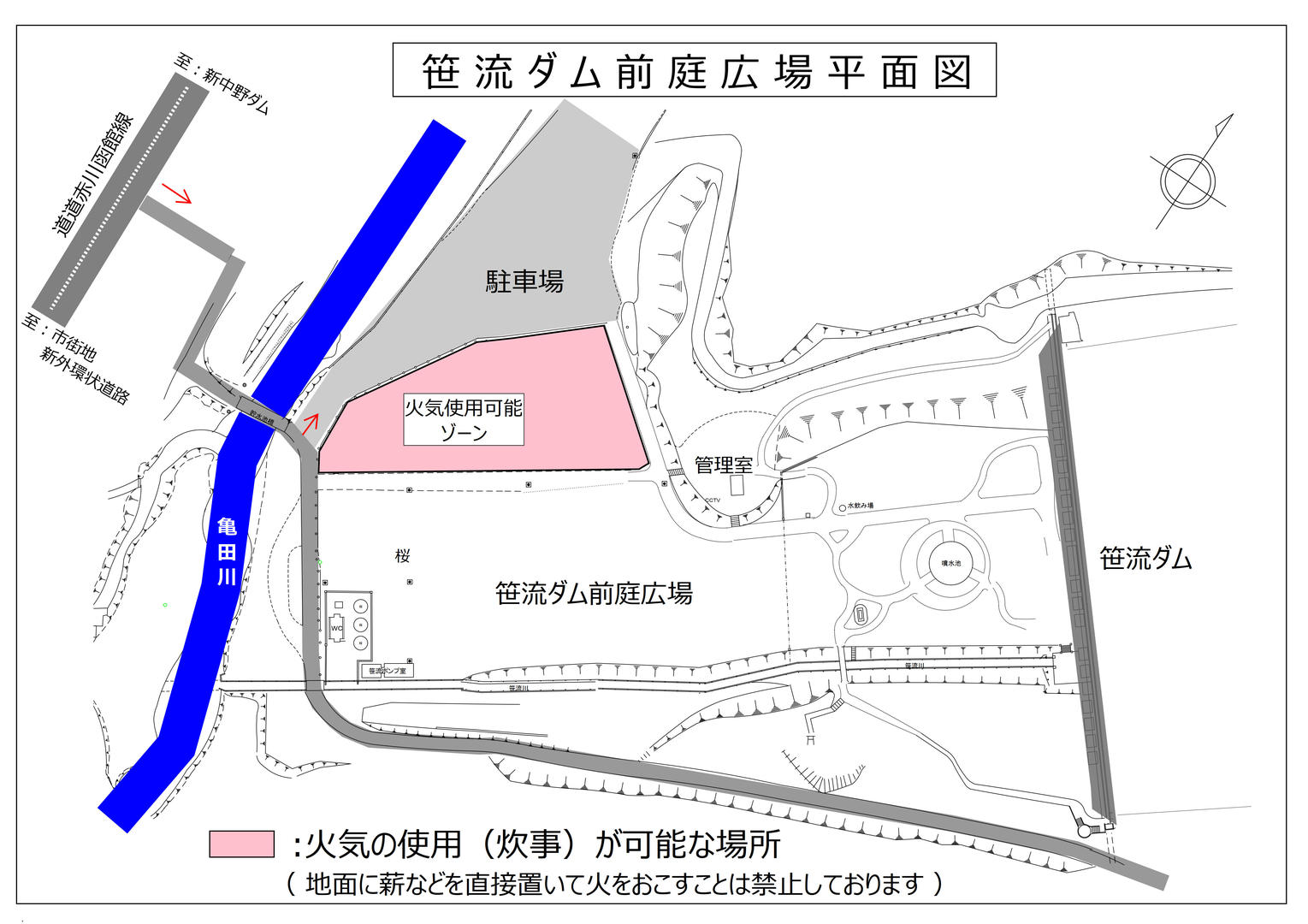 - 火気の使用(炊事)ができる場所は下図のとおりとなっています。