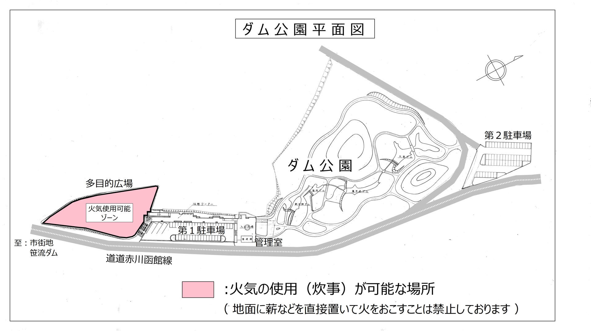 - 火気の使用(炊事)ができる場所は下図のとおりとなっています。